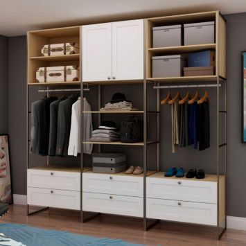 Menor preço em Closet Aberto Guarda-Roupa 2 Portas 6 Gvt Estilo Americano Savana/Branco