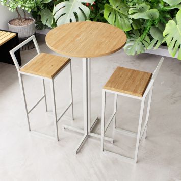 Menor preço em Conjunto Mesa Alta Bar Bistrô Redonda 2 Banquetas Confort Pinus Industrial White