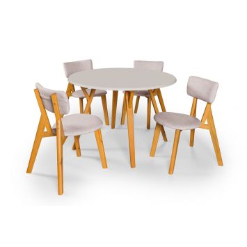 Menor preço em Conjunto Sala de Jantar Liz 4 Cadeiras Mesa 110cm Tampo Redonda Pes em Madeira