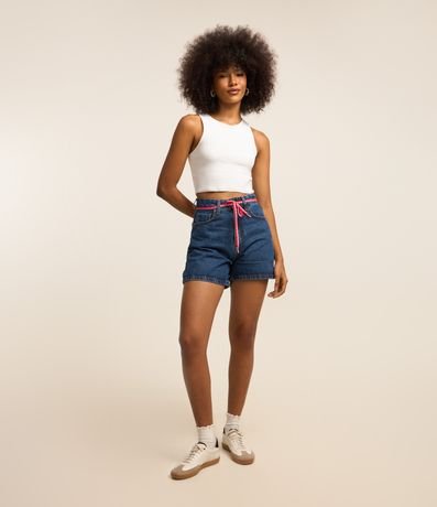 Menor preço em Short Mom Jeans Cintura Alta com Cordão na Cintura
