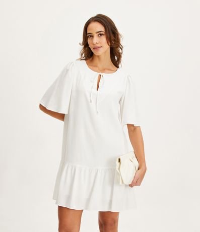 Menor preço em Vestido Curto Manga Evasê em Viscose com Barra Franzida