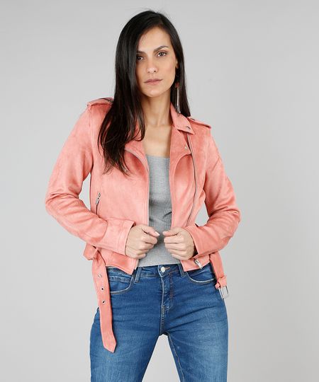 - Jaqueta Feminina Biker em Suede com Bolsos Rosê