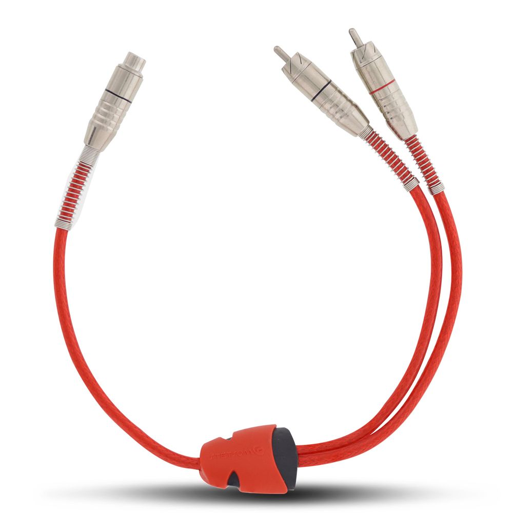 • Promoção para Cabo Coaxial RCA Y Stetsom 2 Macho 1 Fêmea 45cm 4mm Tripla Blindagem Revestido PVC Flexível Vermelho