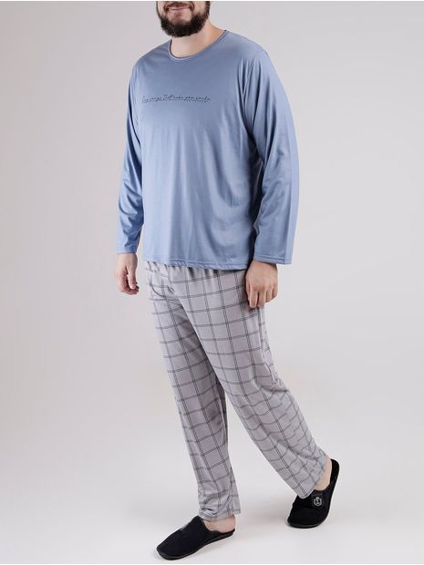 - Pijama Longo Plus Size Masculino Azul/grafite G2