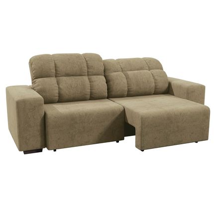 - Sofá 4 Lugares Linoforte Versalhes com Assento Retrátil e Encosto Reclinável em Tecido Suede Bege